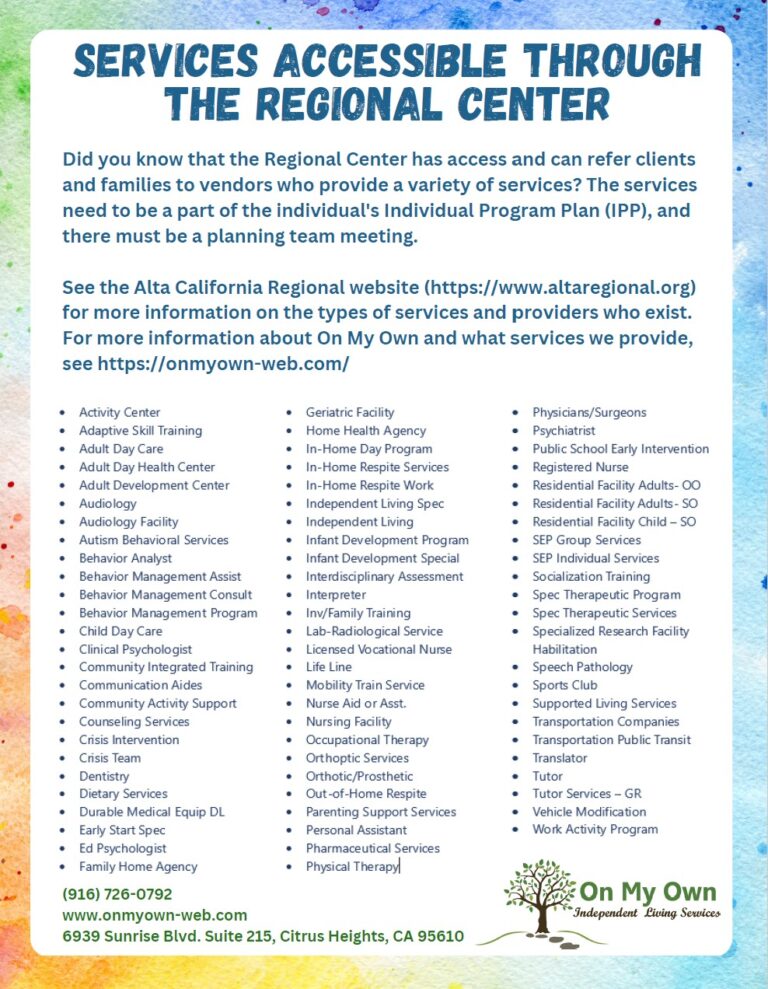 See the flyer below for a list of services that are accessible through the Regional Center.